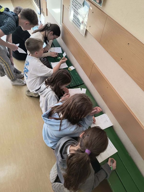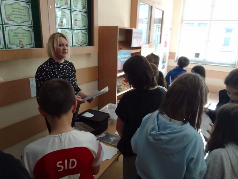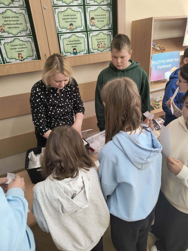 Podczas długich przerw uczniowie mieli możliwość sprawdzenia swojej wiedzy matematycznej, rozwiązując różnorodne zadania, łamigłówki i zagadki. Za poprawne odpowiedzi czekały na nich drobne upominki, które dodatkowo motywowały do podejmowania wyzwań.